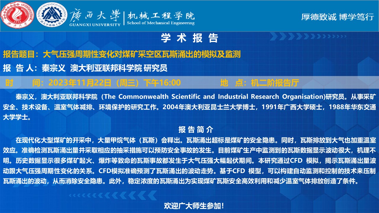 【威尼斯432888cam学术报告】 大气压强周期性变化对煤矿采空区瓦斯涌出的模拟及监测